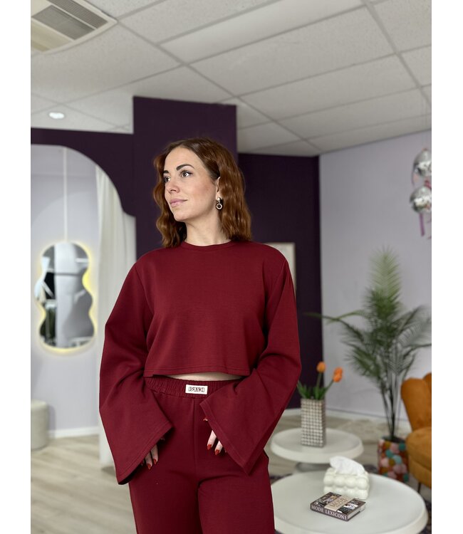 De CARINA sweater in bordeaux is zacht, comfortabel en stijlvol. De warme tint maakt het een perfecte basic voor het najaar en winter. Het item valt op maat.