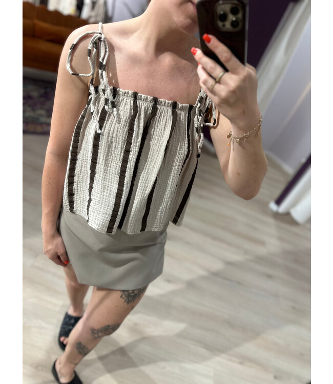 Elegante beige top van wafelkatoen met een flatterende pasvorm. Perfect voor zowel casual als chique looks. Het item is one size en valt klein.