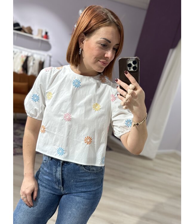 Stijlvolle witte top van 100% katoen met speels strikdetail op de rug. Perfect voor elke gelegenheid, van werk tot casual weekend.