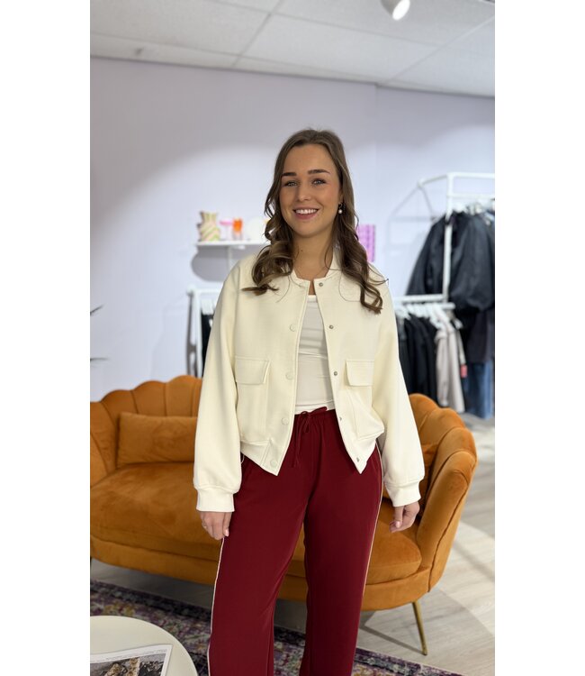 De MIA bomber in wit is een echte eyecatcher. Stevige stof, sportief en toch vrouwelijk. Draag over je favoriete jurk of combineer met jeans voor een casual look. Het item valt ruim.