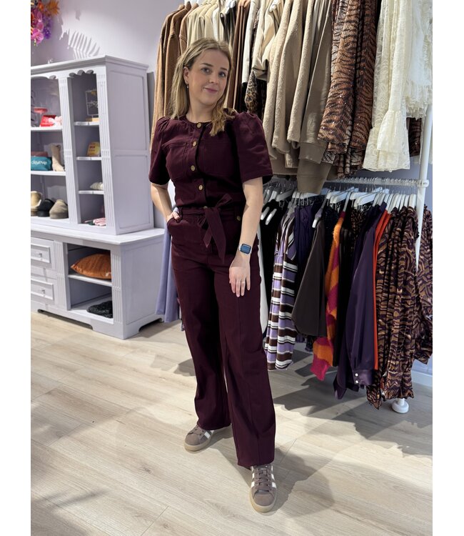 Met de YAEL jumpsuit in wine red maak je direct indruk. De diepe kleur en elegante snit zorgen voor een krachtige, vrouwelijke uitstraling.